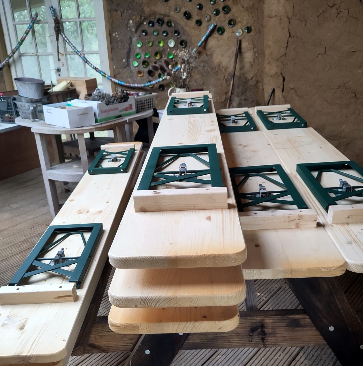 We’ve sourced some lovely folding benches and tables, which we’ll christen at the upcoming wreath workshop next Sunday.